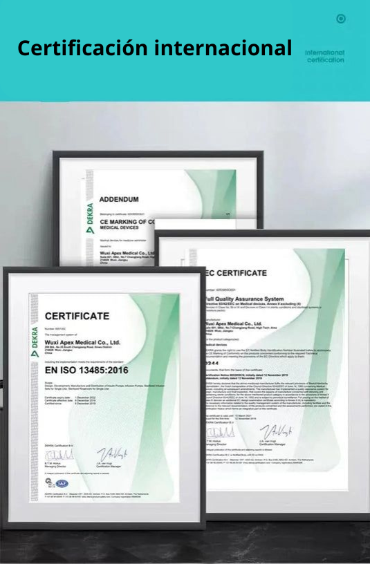 • ISO 13485: Fabricado con un sistema de gestión de calidad específico para dispositivos médicos. Cada dispositivo se produce según estándares internacionales de calidad – lo que significa precisión y durabilidad.